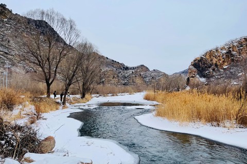 - 10:00|到达白河峡谷,开始漫步在白河峡谷大自然的冰面上,体验冬季最美冰上之旅;仅是在山野间踏冰徒步的体验就足以吸引人了,在白河徒步还有其他的惊喜,比如河流两旁的陡崖峭壁、沿途的村落和茅草屋、荡漾的芦苇、洁白的冰瀑、以及那个《让子弹飞》里经典的吃着火锅唱着歌的场景在现都会让此行非常的饱满。
